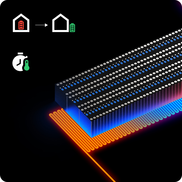 Wir sind nicht nur eine Wärmepumpe – wir sind ein komplettes Energiesystem: Neben der Wärmepumpe integrieren wir die gesamte Haustechnik, die sonst im Gebäude installiert würde – wie den Warmwasserspeicher, Pufferspeicher sowie sämtliche Steuerungskomponenten inklusive Pumpen und Ventilen. Darüber hinaus gehen wir über das Heizen hinaus: Ein leistungsstarker 18-kWh-Batteriespeicher und ein Wechselrichter für den direkten Anschluss einer PV-Anlage sind bereits enthalten.